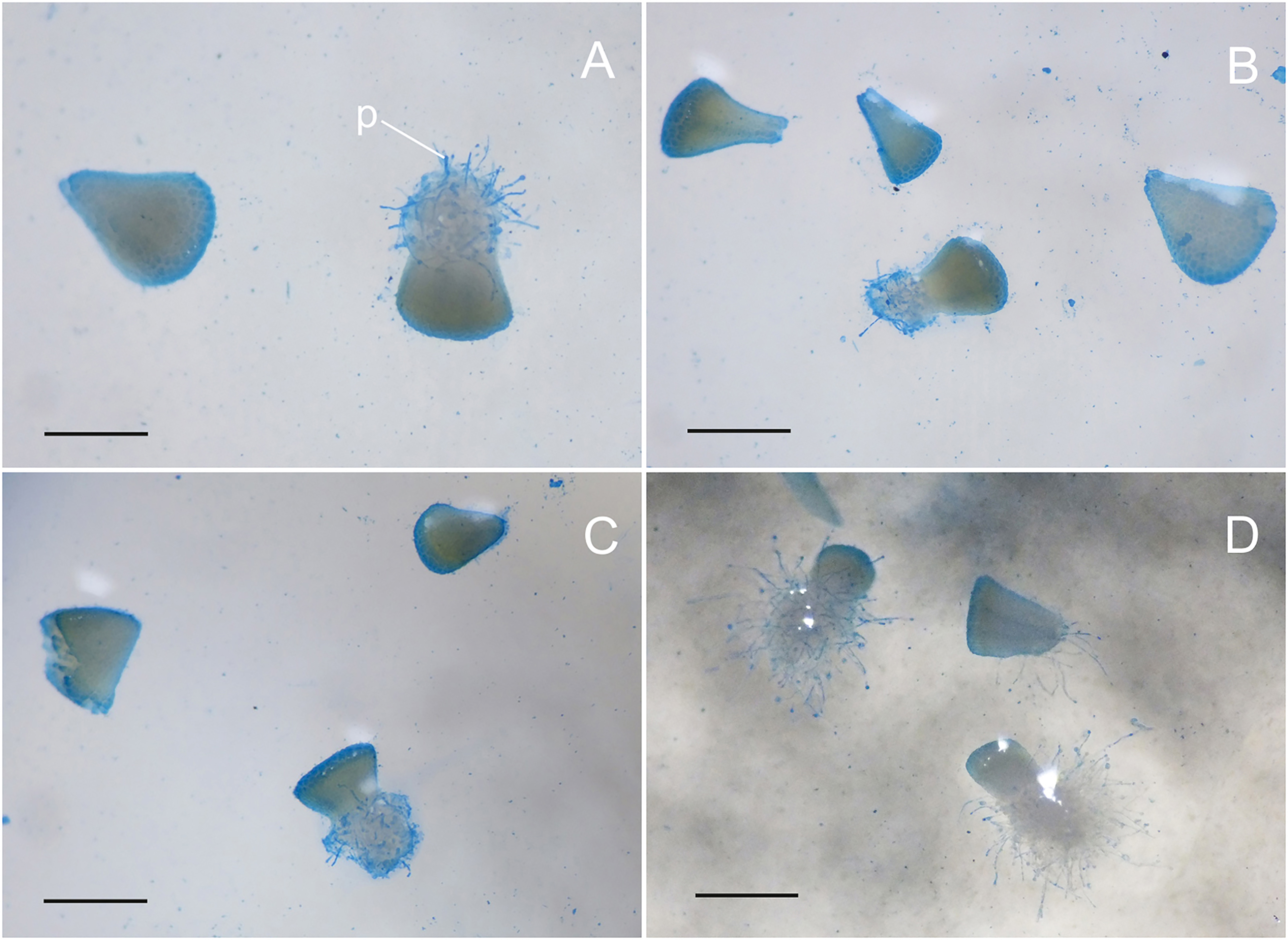 In Turkey the tubers of about 120 orchid species are widely collected for manufacturing the traditional drink salep. In this study, we focused on the in vitro germination of the pollen of the salep orchid species Ophrys mammosa, Orchis provincialis, Anacamptis morio subsp. morio, Orchis simia and Neotinea tridentata and discussed the potential effects this might have on the conservation of these orchids by reducing the need to collect them in the field. Pollen was sown on different media; Knudson, Orchimax and the medium described by Malmgren, and then incubated at 24 ± 1 °C in darkness for 24 h. Germinated pollen was stained with Brilliant Blue and examined under a stereoscopic microscope. Results of Tukey and Dunnett T3 statistical tests indicated that in terms of percentage germination, the best germination was observed on O. mammosa by 55% and Orchimax was the most successful medium by 50.5%. For pollinaria germination, the best rate was observed on O. mammosa by 69%. The medium Malmgren was the best germinative by 61.3%. It is clearly seen that difference in germination rates among studied species are achieved using different media. The development of such a method of studied species in this research points to the fact that this is possible and should serve as encouragement for others to devise procedures for other species. These kinds of researches on propagation of orchids would be useful to reintroducing some of the rarer, endangered and endemic species in Turkey such previously succeed for Orchis militaris and Liparis loeselii in Great Britain.